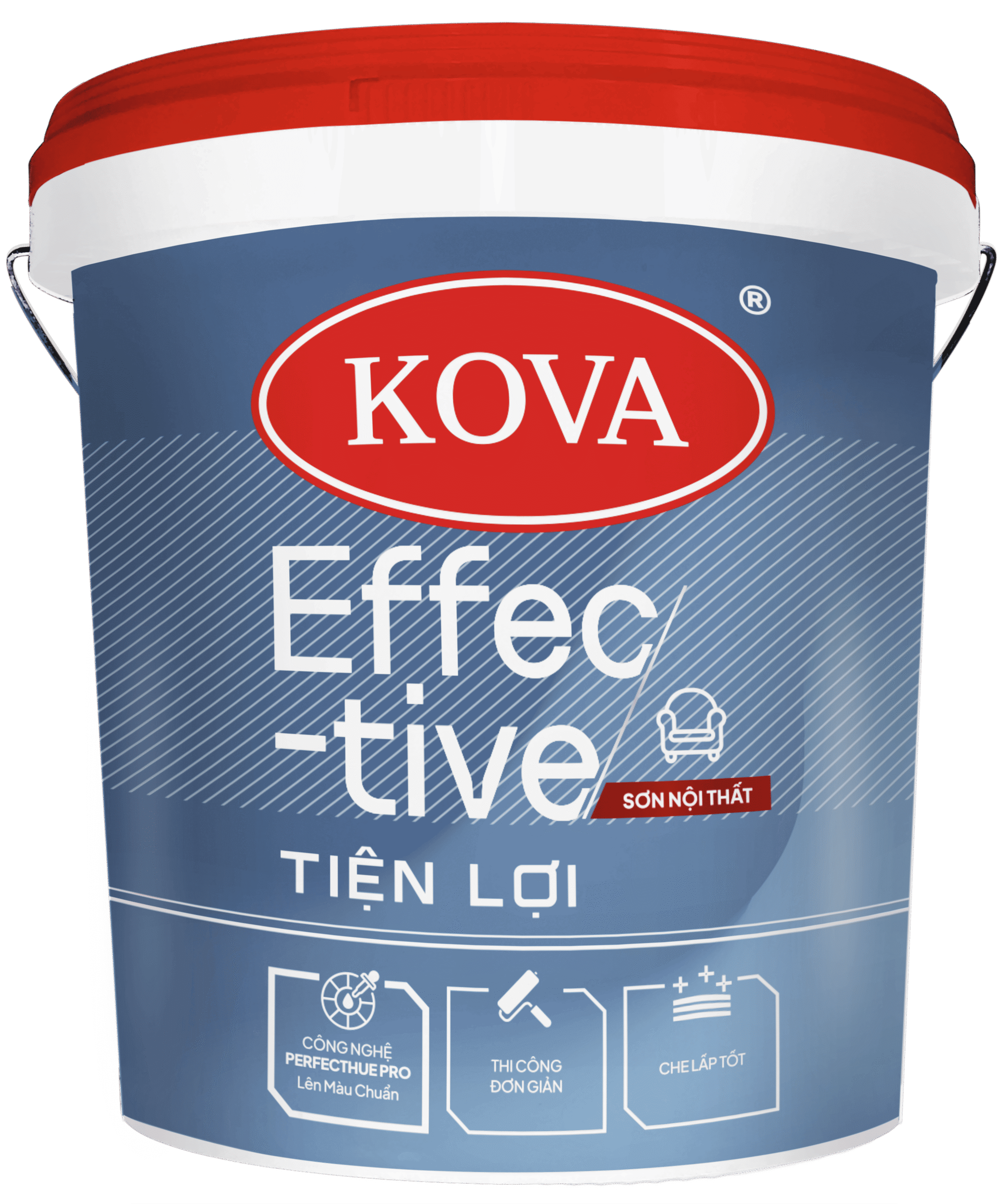 Sơn nội thất KOVA Effective Tiện Lợi là sơn nước gốc Acrylic với nhiều đặc tính vượt trội như khả năng che lấp cao, bề mặt sơn mịn đẹp. Công nghệ PerfectHue Pro giúp màu sơn lên chuẩn, đẹp và dễ thi công giúp tiết kiệm được thời gian, nhân công, chi phí khi sử dụng.